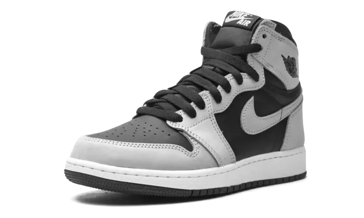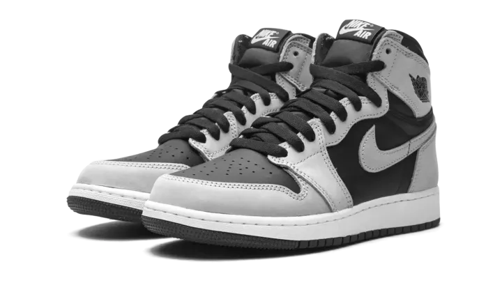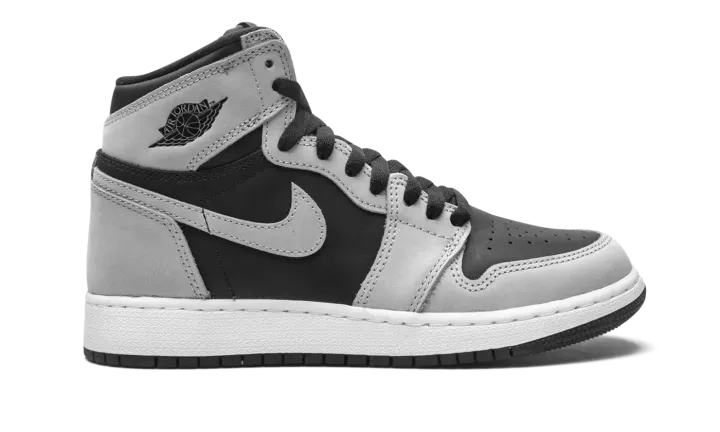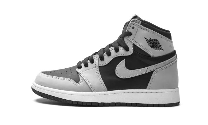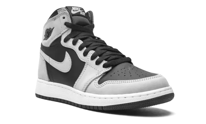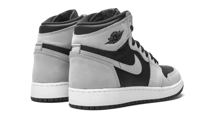 The Air Jordan 1 High "Shadow 2.0" is the youth sizing of the colorway that is inspired by the original black-and-grey "Shadow" edition of Michael Jordan's first signature shoe. The "Shadow 2.0" is an updated edition of the versatile colorway. On the "Shadow 2.0," black leather appears on the mid-panel and on the perforated toe. The first "Shadow" featured grey leather on the toebox. Moreover, the "Shadow 2.0" dons grey leather on the forefoot and eyelets. The "OG" "Shadow" displayed black leather on those panels. Grey leather can be found on the collar, heel, and Swoosh. A black "Wings" logo graces the collar and grey "Nike Air" on the tongue tag on the black nylon tongue. It should be noted that the grey leather panels found on the "Shadow 2.0" are lighter in color than the original grey leather on the first "Shadow." Release date: May 15, 2021.