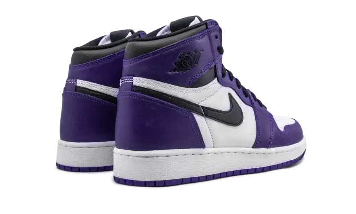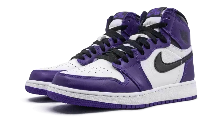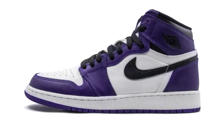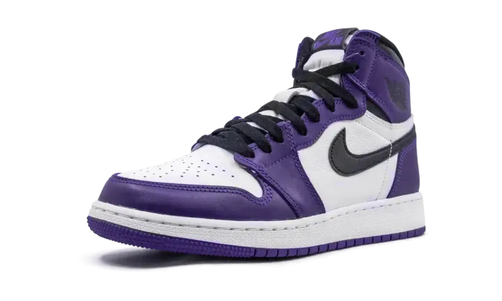 The Air Jordan 1 GS "Court Purple 2.0" is the youth sizing of the popular colorway released in spring 2020, and is part of Jordan Brand's continuous efforts in producing coveted non-original Jordan 1 colorways. Employing a familiar formula in the line's design history, the upper features purple leather overlays along the forefoot, eyelets, and heel that contrast a white leather perforated toe and mid-panel. Black leather Swoosh branding covers the mid-panel and a black Air Jordan "wings" logo graces the collar. A white midsole and Court Purple outsole put the finishing touches on this classy design in children's sizing.