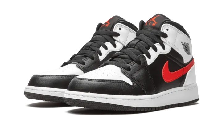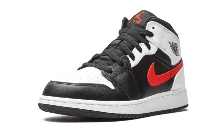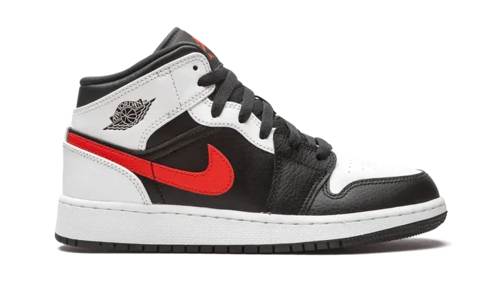 The Air Jordan 1 Mid GS "Siren Red" is the youth sizing of Michael Jordan's first signature shoe in a go-anywhere colorway. Over the years, the Jordan 1 Mid silhouette has been one of the most popular Jordan models for kids due to the fun designs it comes in and because of its association with its namesake, the greatest basketball player of all time. The "Siren Red" features black tumbled leather overlays on the forefoot, lower eyestay, mid-panel and collar. White leather on the perforated toe and on the upper eyelets, collar, and heel balance out of the look. The shoe's nickname is derived from the blazing shade of red used on the Jumpman detailing on the tongue and the leather Swoosh branding on either side. A black "Wings" logo appears on the collar to finish off the look.