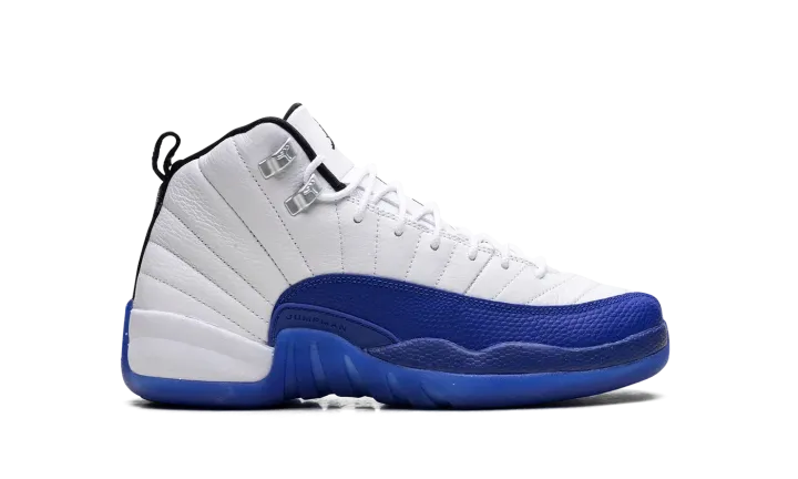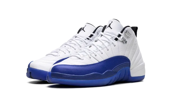 The Air Jordan 12 GS "Wizards" is the youth sizing of the retro basketball shoe in a colorway inspired by the model's Player Exclusive style from Michael Jordan's time with the Washington Wizards. The Jordan 12 "Wizards PE" was made for Jordan to wear with the Wizards. In 2004, Jordan Brand released a revised version of the Jordan 12 "Wizards PE" called the "French Blue." In 2024, Jordan Brand once again released the Jordan 12 in a colorway inspired by both styles. Here, the shoe features a white leather upper and a Game Royal textured leather mudguard. Black Jumpman and "Two 3" branding appear on the tongue. Underfoot, a black rubber outsole completes the look. Release date: Holiday 2024