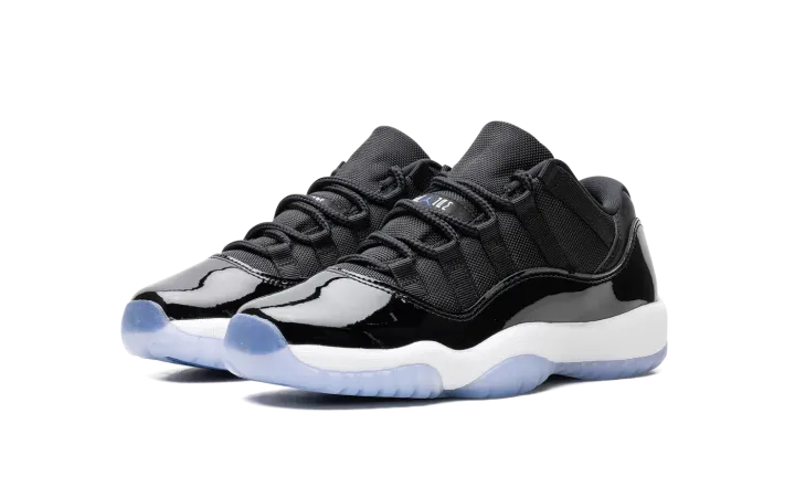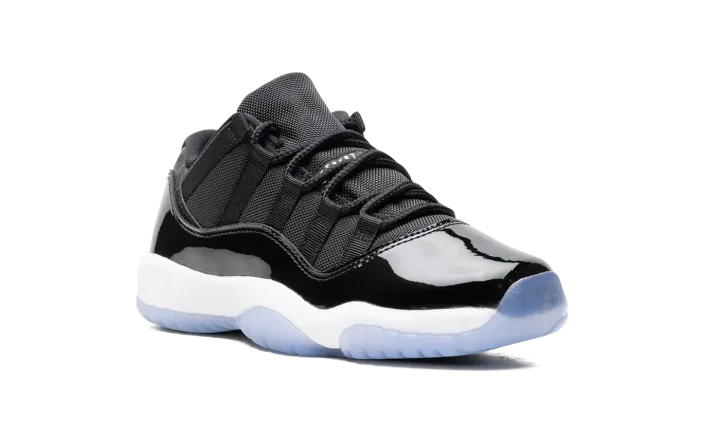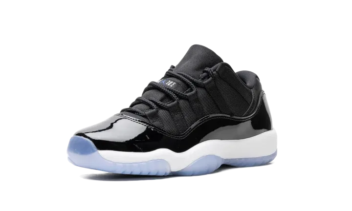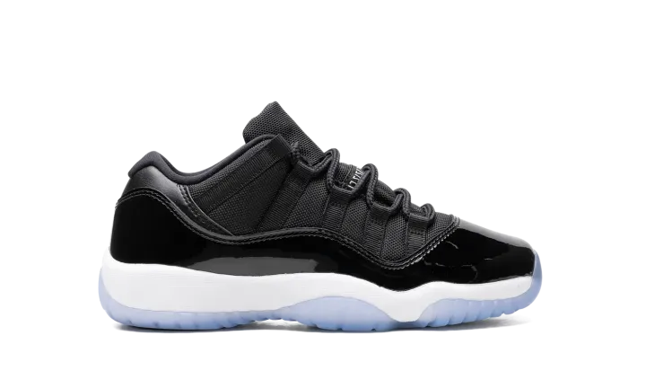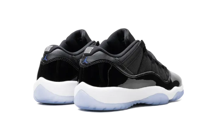 The Air Jordan 11 Low GS "Space Jam" is the youth sizing of the beloved colorway of the retro basketball sneaker that originally appeared on the model's high-top shoe beginning in 2000. The Jordan 11 Low "Space Jam" signals the first time the iconic colorway has appeared on Michael Jordan's eleventh signature shoe in low-top form. Just like the original style, the Jordan 11 Low features a black ballistic mesh construction and shiny black patent leather mudguard. "Jordan Jumpman" detailing is seen on the black mesh tongue. A small Jumpman is seen in white on the heel. Underfoot, the white foam midsole and icy translucent blue rubber outsole complete the look.