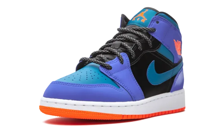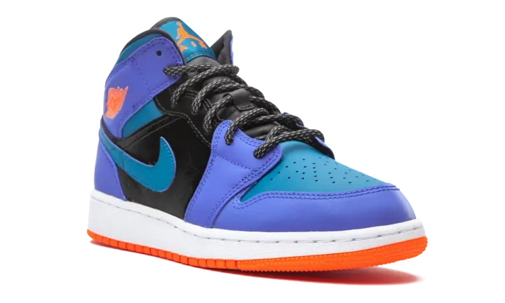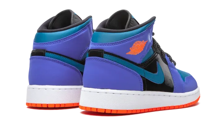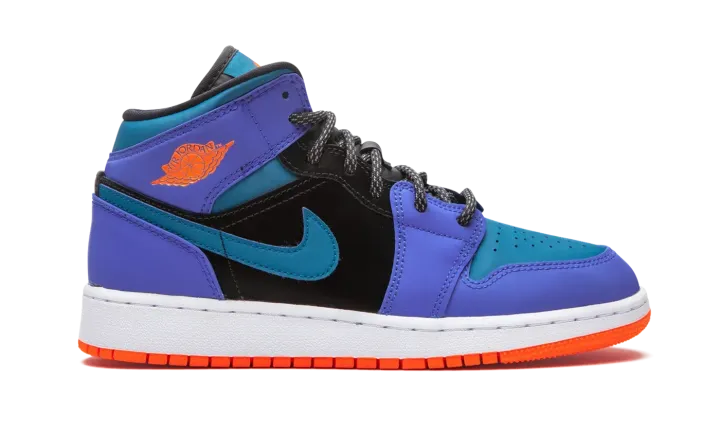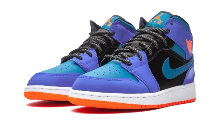 The Air Jordan 1 Mid GS "Racer Blue" is a kids-exclusive colorway of Michael Jordan's first signature shoe dressed in a palette inspired by vibrant colors often found on vintage outdoors gear. Hardly subtle, the "Racer Blue" design is yet another exciting Jordan 1 for kids in the comfortable mid-top silhouette. The upper features a hue of blue dubbed "Racer Blue" by Jordan Brand on the synthetic nubuck overlays on the forefoot, collar, and heel that could have just as well been used on a performance outerwear jacket in the '90s. Additional retro vibes come courtesy of the Green Abyss nubuck material on the perforated toe, mid-panel, and collar underlay. The same shade of green is used on the Swoosh detailing on either side. Orange accenting on the "Wings" logo on the collar and Jumpman branding on the tongue adds a subtle pop of color to the look.