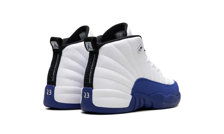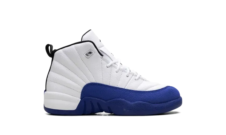 The Air Jordan 12 GS "Wizards" is the preschool sizing of the retro basketball shoe in a colorway inspired by the model's Player Exclusive style from Michael Jordan's time with the Washington Wizards. The Jordan 12 "Wizards PE" was made for Jordan to wear with the Wizards. In 2004, Jordan Brand released a revised version of the Jordan 12 "Wizards PE" called the "French Blue." In 2024, Jordan Brand once again released the Jordan 12 in a colorway inspired by both styles. Here, the shoe features a white leather upper and a Game Royal textured leather mudguard. Black Jumpman and "Two 3" branding appear on the tongue. Underfoot, a black rubber outsole completes the look. Release date: Holiday 2024