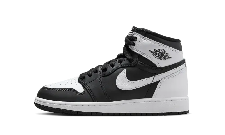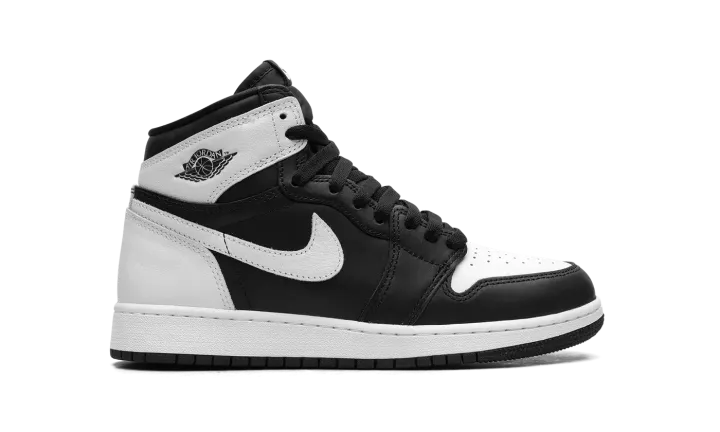 The Air Jordan 1 High OG GS "Black/White" is the youth sizing of the retro basketball shoe in an easy-wearing style. The Jordan 1 High OG "Black/White" features a two-tone, black-and-white appearance, with white leather appearing on the perforated toe and on the collar and heel. Black leather can be found on the toe cap, forefoot, eyelets, and mid-panel. A white leather Swoosh is seen on both sides, and A "Wings" logo appears on the collar. "Nike Air" branding is located on the tongue tag. Underfoot, the shoe's white midsole and black outsole complete the look. Release date: February 24, 2024