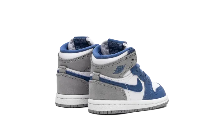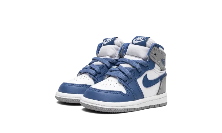 The Air Jordan 1 High OG TD "True Blue" is the toddler sizing of Michael Jordan's first signature shoe nicknamed after an original Air Jordan colorway. The shoe in question is the Air Jordan 3 "True Blue" that debuted in 1988. While the Jordan 1 and Jordan 3 "True Blue" colorways differ in design, both feature an appealing shade of blue accenting on their appearance. Here, the Jordan 1 "True Blue" features a white leather base with True Blue leather overlays on the toe cap, forefoot, eyelets, and Swoosh. Cement Grey leather overlays appear on the heel and on the collar overlay with classic "Wings" branding. Release date: January 14, 2023