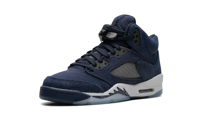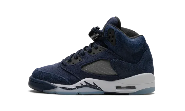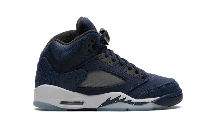 The Air Jordan 5 GS "Midnight Navy" is the youth sizing of Michael Jordan's fifth signature shoe in a colorway with a predominately navy-based look. The Jordan 5 debuted way back in 1990 and throughout the years, has been one of the most popular retro Air Jordan sneakers in Jordan Brand's collection due to collaborations with brands like Off-White and colorways like the "Midnight Navy." The upper features a Midnight Navy textile construction with smoky translucent netting on the mid-panel and tongue. A black Jumpman is embroidered on the tongue and on the heel. Underfoot, the white midsole's classic shark tooth detailing is designed in navy with white speckling. An icy blue translucent rubber outsole completes the look. Release date: November 10, 2023