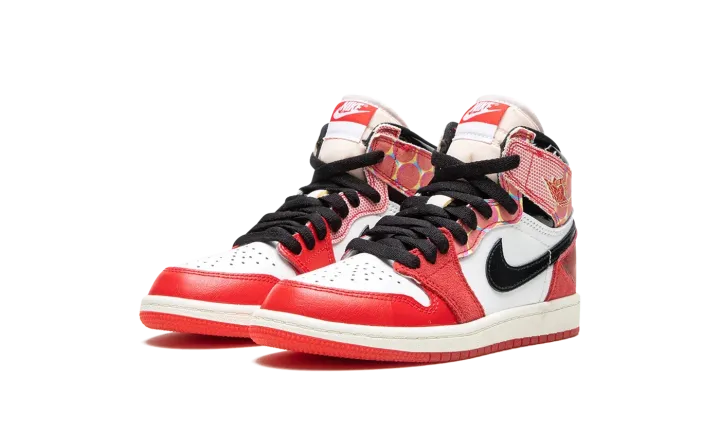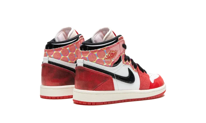 The Air Jordan 1 High PS "Spider-Man: Across the Spider-Verse" is the preschool sizing of the special colorway of Michael Jordan's first signature shoe that is inspired by the sequel of the movie, "Spider-Man: Into the Spider-Verse." Inspired by the film's protagonist, Miles Morales and his Spider-Man suit, the "Spider-Man Across the Spider-Verse" is also the much-anticipated follow-up to 2019's Jordan 1 High OG "Spider-Man." Here, the "Spider-Man Across the Spider-Verse" features a similar design to its predecessor and the Jordan 1's original and iconic "Chicago" colorway. The base is designed in white leather while the overlays are designed in various leathers and suedes with either red accenting or Spider-Man-inspired details. A black leather Swoosh appears on the sides. Underfoot, the aged rubber midsole gives the shoe a vintage look. Release date: May 20, 2023