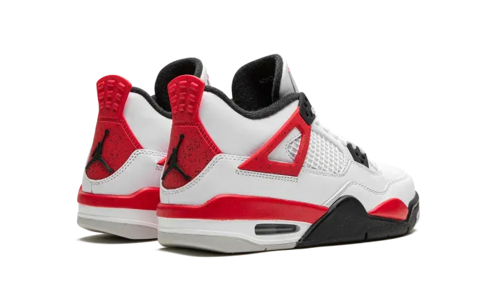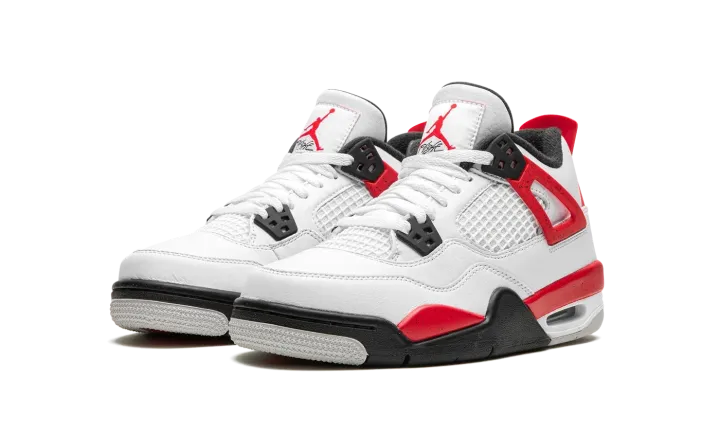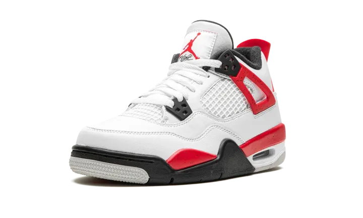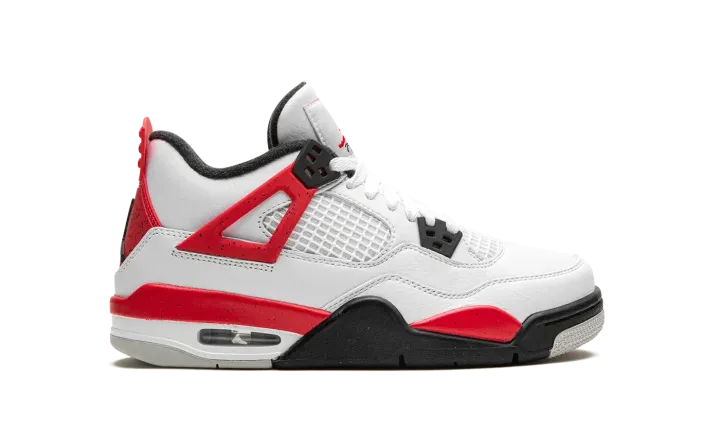 The Air Jordan 4 GS "Red Cement" is the youth sizing of Michael Jordan's fourth signature shoe in a colorway inspired by the model's original and iconic "White Cement" style. The "Red Cement' Jordan 4 mimics the design of the "White Cement" colorway, but features red-based detailing where the "White Cement" has grey cement patterning. The "Red Cement" features a white leather upper with tonal leather overlays and white netting on the tongue and mid-panel. The black plastic eyelets are contrasted by Fire Red "wings" with speckle patterning. The fiery red speckled patterning also appears on the shoe's mudguard and heel counter. A black Jumpman can be found on the tongue and heel. Release date: September 9, 2023