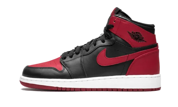 One of the most iconic and important sneakers of all time, the original black and red Air Jordan 1 was worn by Michael Jordan in 1985 and will be forever legendary. Here we have the 2013 release, which returned the shoe to its truest form with the Air Jordan 1's original high-top cut and Nike Air branding on the tongue. Please note: this listing is for YOUTH sizing only.