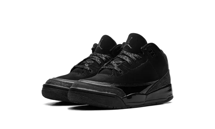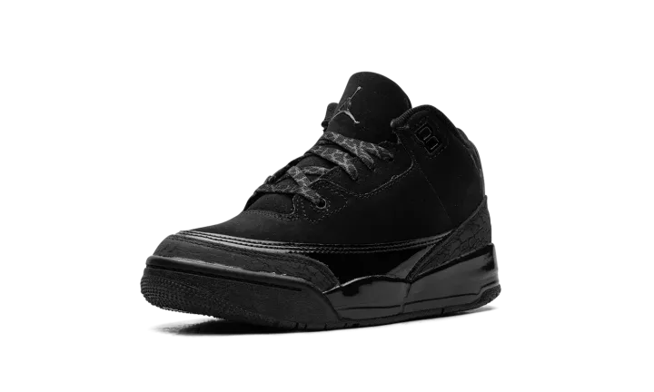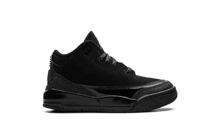 Step into sleek, stealthy style with the Air Jordan 3 PS "Black Cat". This celebrated shoe for preschoolers features a premium all-black nubuck upper and glossy accents. Enjoy comfortable Air cushioning and a versatile look, blending heritage design with a clean aesthetic, perfect for making a bold statement at school or on the streets.