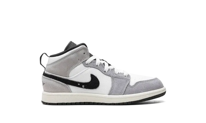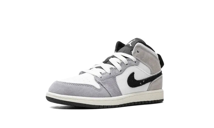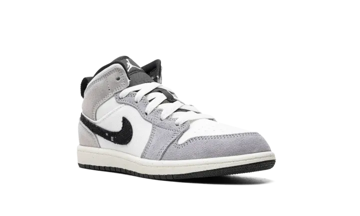 The Air Jordan 1 Mid SE Craft PS "Cement Grey" is the preschool sizing of the neutral-based colorway of the lifestyle shoe. A versatile colorway, the "Cement Grey" features a white canvas construction with Cement Grey and light grey suede overlays. A black canvas Swoosh is seen each side of the sneaker. A tonal "Wings" logo is embroidered on the heel overlay. An aged-looking, Sail-colored rubber midsole and black rubber outsole completes the clean design. Release date: August 29, 2023