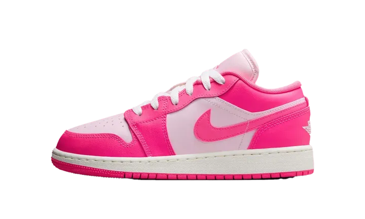 Step into a charming look with the Air Jordan 1 Low GS "Valentine's Day". This celebrated shoe for grade schoolers features a festive color scheme of pink, red, and white on a smooth leather upper. Enjoy comfortable Air cushioning and a versatile style, perfect for making a sweet statement at school or play.