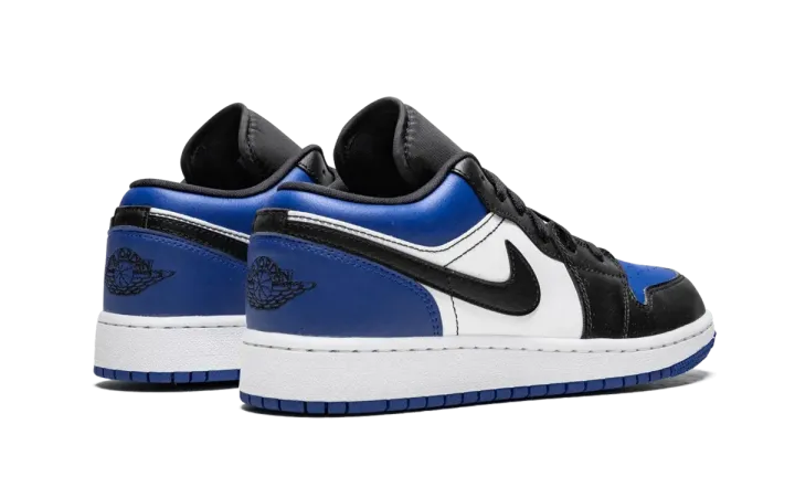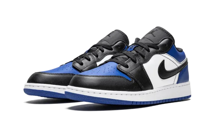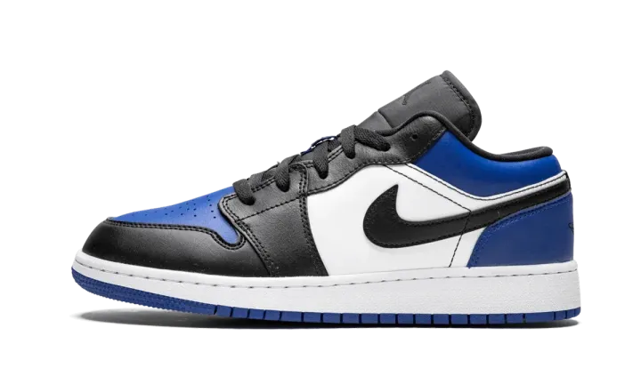 The Air Jordan 1 Low GS "Royal Toe" is the grade school sizing of the low top release of the Air Jordan 1 design that brings to mind the original "Royal" colorway as well as the ultra-rare collaboration from Fragment. The same discernible qualities of the original Air Jordan 1 design are evident in low top form. Black, white, and royal blue leather cover the upper part of the sneaker, as does a familiar black nylon tongue and royal blue toe. A stark white midsole and royal blue outsole completes the design. The Air Jordan 1 Low "Royal Toe" for kids released in summer 2019.