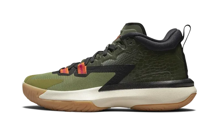 Engineered for young athletes, the Jordan Zion 1 GS "Let's Dance" basketball shoe is a Grade School-sized version of Zion Williamson's signature model. It features a responsive cushioning setup designed for energetic movement, stability, and control on the court. The "Let's Dance" colorway is characterized by vibrant, eye-catching colors and graphic details, making it a stylish performance shoe for kids who want to mimic Zion's explosive play. The shoe is built with supportive materials for a locked-in feel, perfect for youth basketball players.