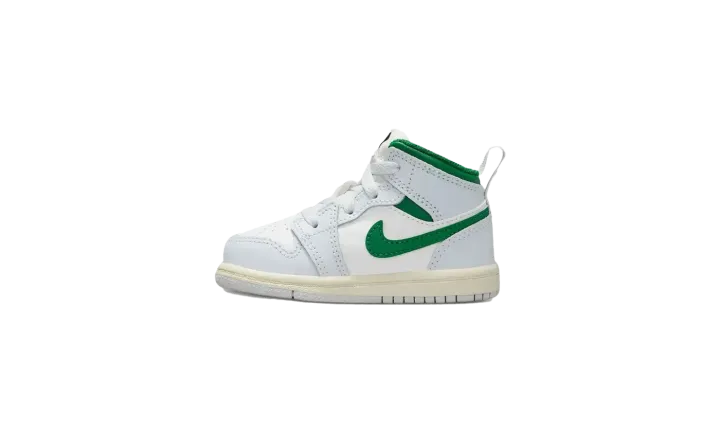 Jump-start your little one's style with the Jordan 1 Mid TD in "Summit White Pure Platinum Sail Pine Green," a toddler-sized version of the iconic sneaker. Crafted for the youngest sneakerhead, these tiny kicks feature the classic high-top design and unmistakable Jordan heritage. The durable construction and secure fit make them perfect for wobbly steps and active play. Give your toddler a legendary look and comfortable support for their everyday adventures.