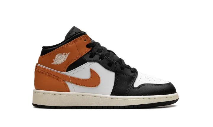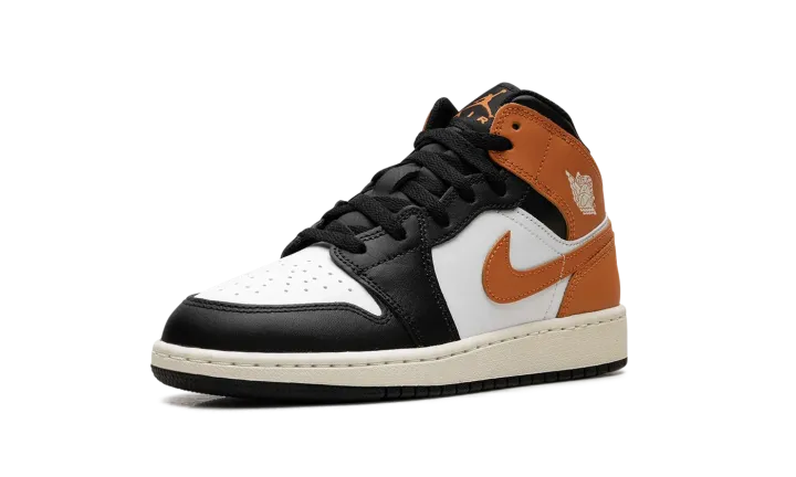Step into a striking, vibrant look with the Air Jordan 1 Mid GS "Starfish / Black Toe". This celebrated shoe for grade schoolers features the dynamic orange Starfish hue with classic Black Toe color blocking. Enjoy comfortable Air cushioning and a versatile style, perfect for making a stylish statement at school or on the streets.