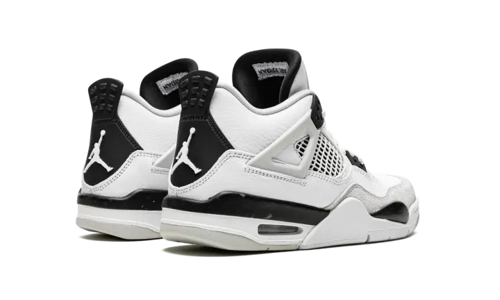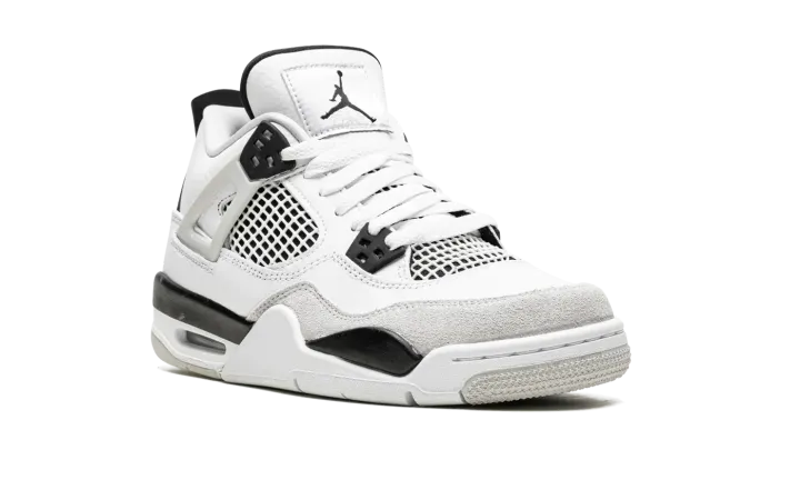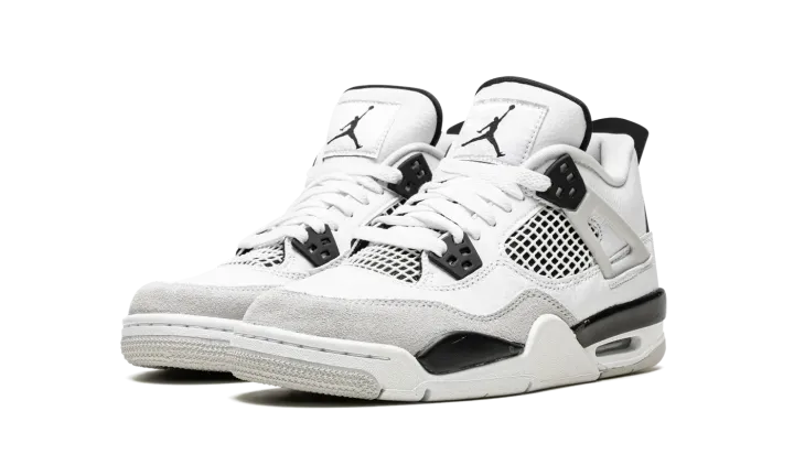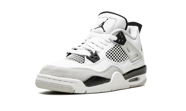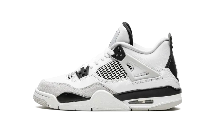 The Air Jordan 1 GS "Military Black" is the youth sizing of the colorway of Michael Jordan's fourth signature shoe that replicates the color block of the model's popular, original "Military Blue" style from 1989. The Jordan 4 GS "Military Black" is inspired by the Jordan 4 "Military Blue" as it features the same color design as the old school colorway, just with black accents instead of blue. The shoe's upper is constructed with a white leather base with grey suede on the forefoot overlay. The TPU eyelets and heel counter are accented in black. As are the underlays beneath the netting on the sides and on the tongue. Classic Jumpman logo detailing can be found on the heel and on the tongue tag. Release date: May 21, 2022