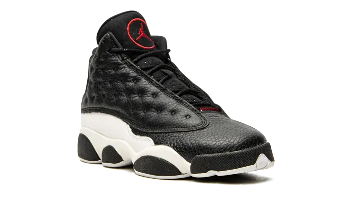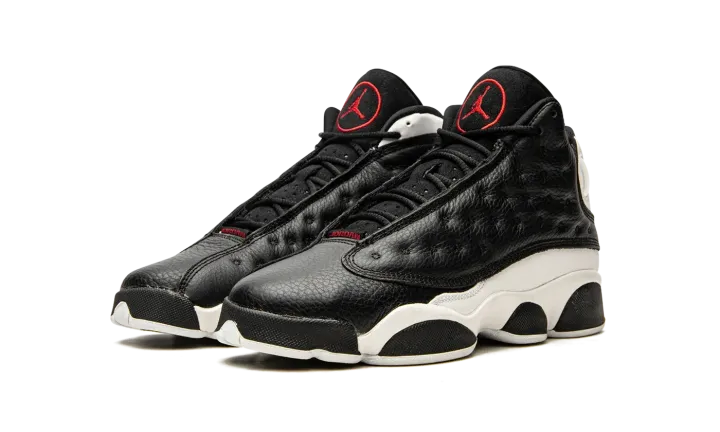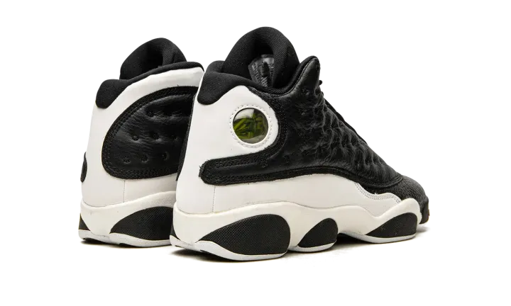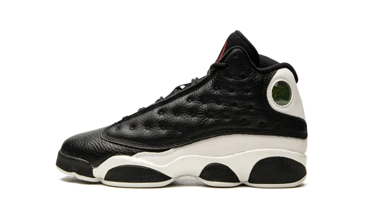 The Air Jordan 13 GS "Reverse He Got Game" is the youth sizing of Michael Jordan's thirteenth signature model in a look inspired by the original white and black colorway. Known for its cameo appearance in Spike Lee's landmark basketball film "He Got Game," the original white and black Jordan 13 is flipped" for a predominantly black upper with white accents. Black quilted leather now covers the upper while the mudguard and heel takes on a stark white appearance. A green-tinted holographic window appears near the collar with an embroidered red Jumpman logo on the tongue giving the shoe true-to-original styling. Release date: January 11, 2020.