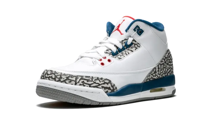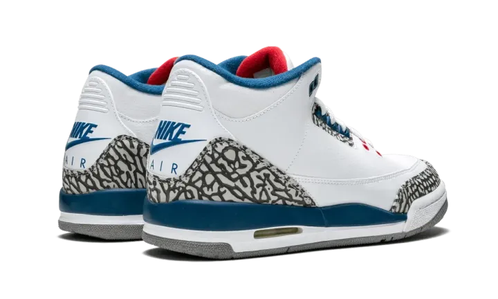 The Air Jordan 3 "True Blue" BG is the boys' version of the 2016 release of the classic original colorway. The children's "True Blue" Jordan 3 replicated the men's version exactly, featuring a full-grain white leather upper with blue and red accents alongside the iconic elephant print paneling. The boys' Air Jordan 3 "True Blue" BG features the original "Nike Air" branding on each heel to complete the authentic look of the model that first released in 1988.