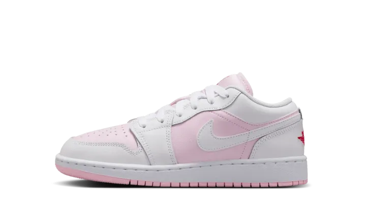 Step into a striking, vibrant look with the Air Jordan 1 Low GS "Pink Foam / Fire Red / White". This celebrated shoe for grade schoolers features a bold Pink Foam and Fire Red upper contrasted sharply with White. Enjoy comfortable Air cushioning and a versatile style, perfect for making a stylish statement at school or on the streets.