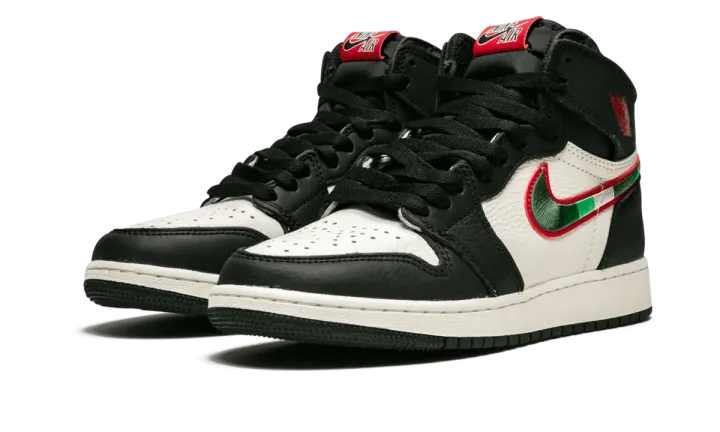 The Air Jordan 1 GS "Sports Illustrated" is the kids' sizing for the special edition colorway released in late 2018. The unique look takes inspiration from the first Sports Illustrated cover Michael Jordan appeared on, in December 1984, when he was a rookie with the Chicago Bulls. With the headline "A Star Is Born," the cover offered a glimpse into Jordan's budding star appeal. For the Air Jordan 1 GS "Sports Illustrated," the colorway features a black and white leather upper with embroidered Swooshes in green and white stripes with a red border, which reference the uniforms of the Milwaukee Bucks, who Jordan was competing against in the cover photo.