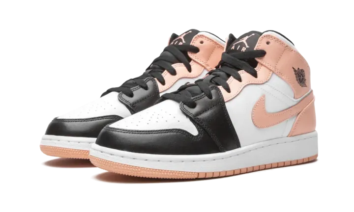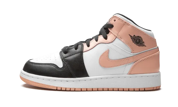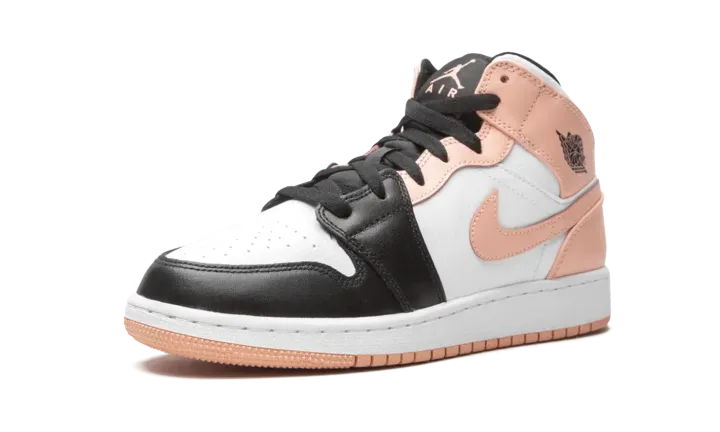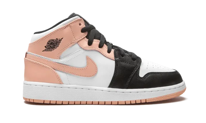 The Air Jordan 1 Mid GS "Arctic Orange" is a youth-sized colorway of Michael Jordan's first signature shoe that draws inspiration from the model's original "Black Toe" makeup. The "Arctic Orange" displays white leather on the perforated toe and the mid-panel. Jordan Brand contrasts the aforementioned panels with black leather on the surrounding toe cap, forefoot, and eyelets overlays. The two-tone look is based on the color block of the "Black Toe" Air Jordan 1 from 1985. Elsewhere, the collar, heel, and Swoosh are dressed in Arctic Orange leather. A black "Wings" logo appears on the collar and an orange Jumpman and "Air" detailing is found on the black tongue tag. A white midsole and Arctic Orange outsole round out of the look of this Jordan 1 Mid in children's sizing.