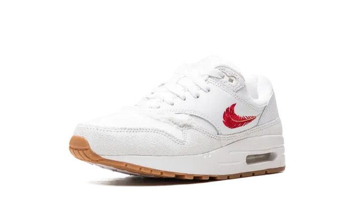 The Nike Air Max 1 GS "The Bay" is the youth sizing of the classic running shoe in a colorway that shows love to San Francisco and its coastal scenery. "The Bay" features a unique combination of materials, beginning with white canvas on the shoe's base. Tonal leather appears on the mid-panel and heel. The fuzzy detailing on the forefoot and tongue, along with the red feather-like Swoosh on the lateral side and reptilian-inspired Swoosh on the medical side are all inspired by various wildlife one could find on a road trip along the pacific coast. "The Bay" text appears on the tongue. Release date: June 7, 2023