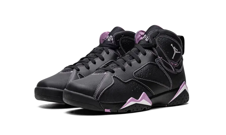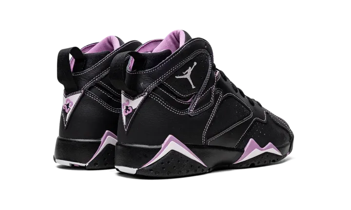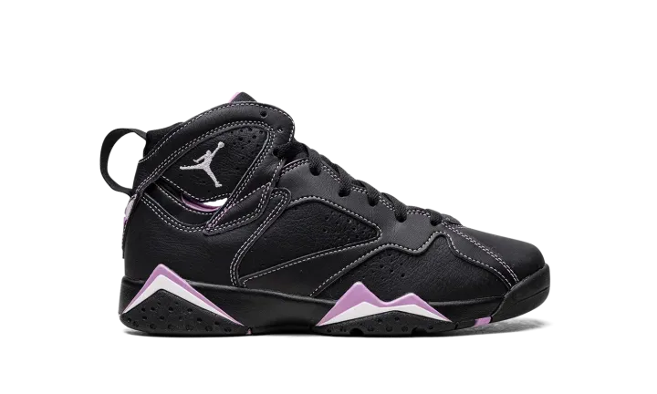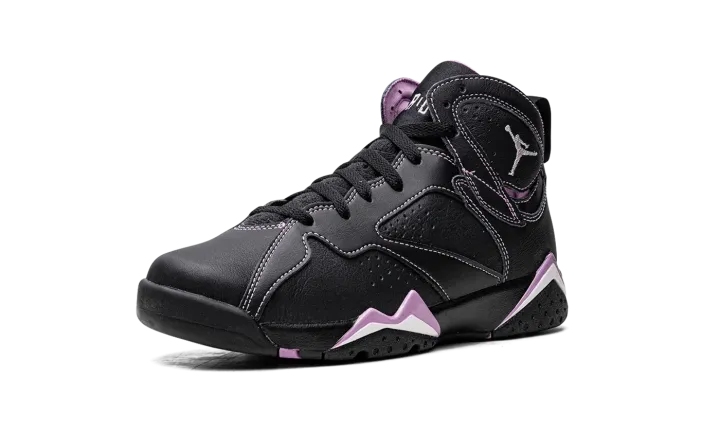 The Air Jordan 7 GS "Barely Grape" is a kids-exclusive colorway of the retro basketball shoe. The "Barely Grape" style of Michael Jordan's seventh signature shoe features a black leather construction with tumbled black leather on the shoe's base and smooth tonal leather on the overlay panels. A Jumpman is embroidered on the lateral side of the collar and "Air Jordan" branding is stitched onto the tongue. The "Barely Grape" retains the Jordan 7's original "23" logo on the heel, in a pink-inspired hue. Barely Grape detailing appears on the overlays on the black midsole to complete the look. Release date: January 24, 2023