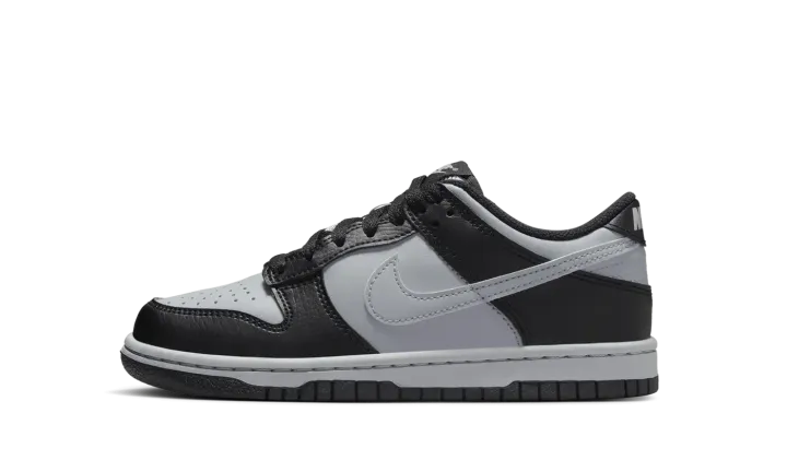 Built for big kids, the Nike Dunk Low GS 'Black Wolf Grey' showcases a two-tone leather upper constructed from smooth grey leather with a color-matched Swoosh in a 3M reflective finish.