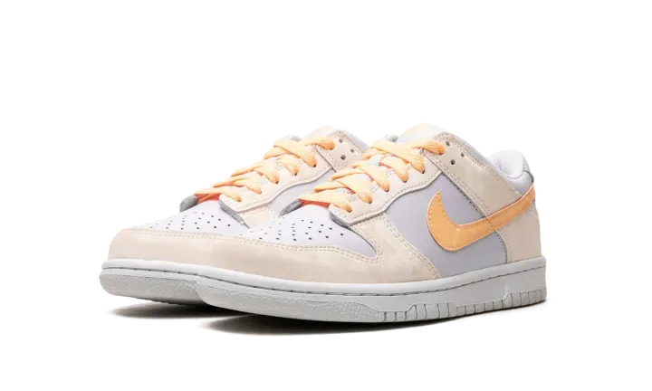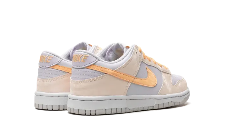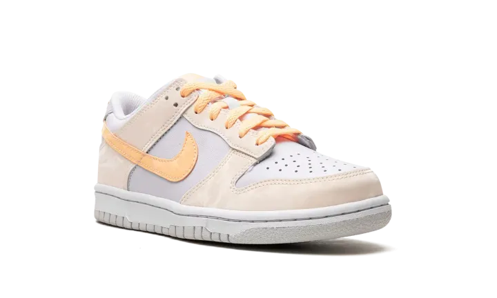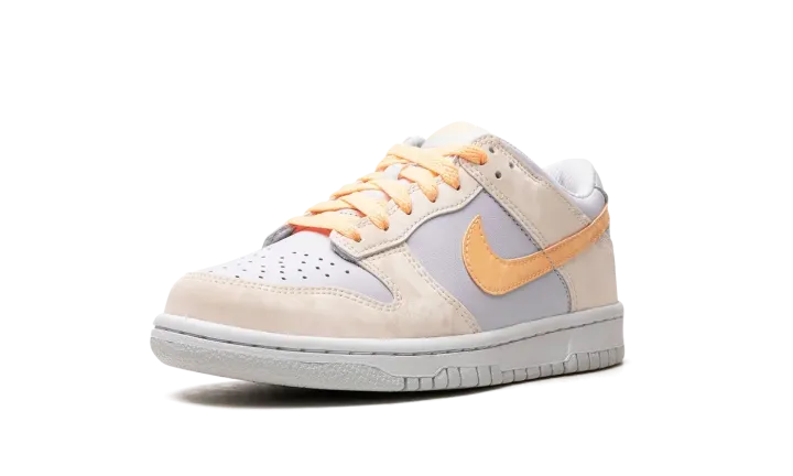 The Nike Dunk Low GS "Melon Tint" is the youth sizing of the classic basketball shoe with an eye-pleasing look. The shoe is complete with a Football Grey leather base with Pale Ivory panels throughout which have a marbled effect. A Melon Tint Swoosh can be found on each side of the shoe. Additional Melon Tint accenting appears on the "Nike" embroidery on the heel and on the tongue tag. A white rubber sole completes the look. Release date: September 15, 2023