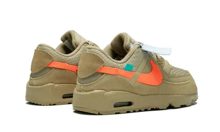 The Off-White x Nike Air Max 90 BT "Desert Ore" is the toddler sizing for the coveted collaboration by Virgil Abloh and Nike. Mirroring the look of the men's release, the baby-sized Air Max 90 receives a Desert Ore shade across the deconstructed upper and sole unit. The tonal tan upper is accented with neon orange Swooshes and green tabs, as well as a miniature version of the signature Off-White zip tie in light blue. The Off-White x Nike Air Max 90 BT "Desert Ore" for babies released in February 2019.