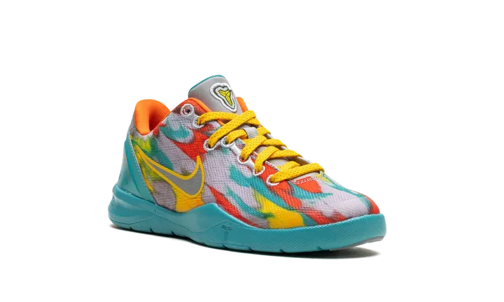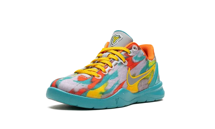 The Nike Kobe 8 Protro PS "Venice Beach" is the preschool sizing of Kobe Bryant's eight signature shoe inspired by graffiti art found on the boardwalk of Venice Beach, California. The Nike Kobe 8 Protro "Venice Beach" has a design as bold as the charm of the West Coast beach. The upper features a grey perforated knit base accented with red, teal, and yellow highlights. A yellow trim surrounds the grey Swoosh on both sides of the shoe. Kobe's signature branding appears on the tongue and on the teal heel counter. Underfoot, the teal midsole and grey rubber outsole complete the look. The Nike Kobe 8 Protro GS "Venice Beach" features the model's original thin tongue for an accurate-to-OG look. Release date: April 13, 2024