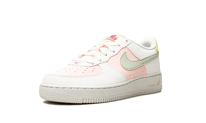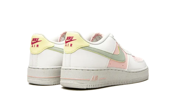 The Nike Air Force 1 Low Next Nature "Easter" is a March 2022 release paying homage to the spring holiday with its summit White, Atmosphere, Citron Tint and Seafoam colorway. The design features a pink leather base with white overlays on the base, eyelets, mudguard and quarter panel. A green Swoosh complements the panels along with a yellow heel tab. The shoe is built on a speckled sole that is made of recycled materials. Release date: March 15, 2022
