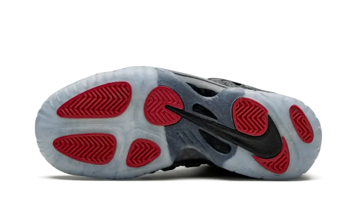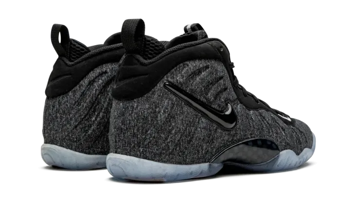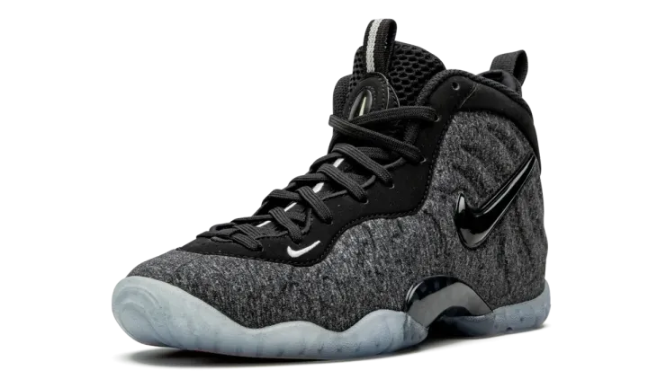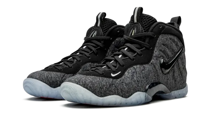 The Nike Little Posite Pro GS takes on a futuristic style with a children's iteration that features the iconic Foamposite shell. A dark heather grey and black color combination dresses the upper with fleece wool, a synthetic suede collar, and carbon fiber midfoot. The high-top basketball sneaker includes a shiny black Swoosh along the side wall of the model and the frosty translucent midsole offers full-length Zoom Air technology accompanied by the herringbone-patterned outsole for added traction.