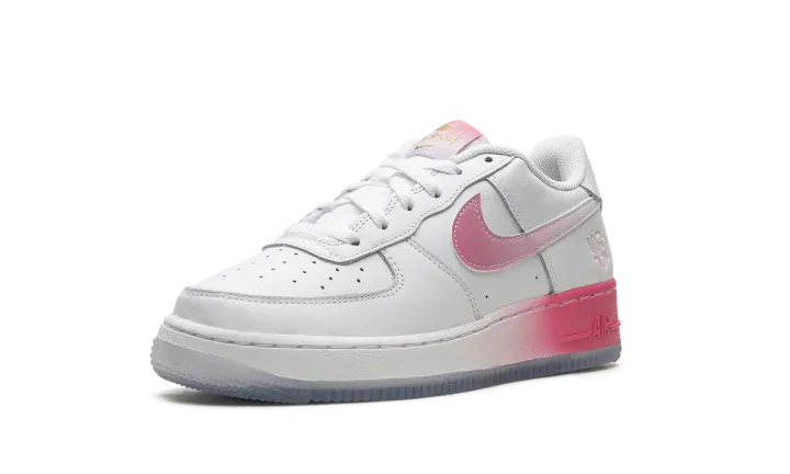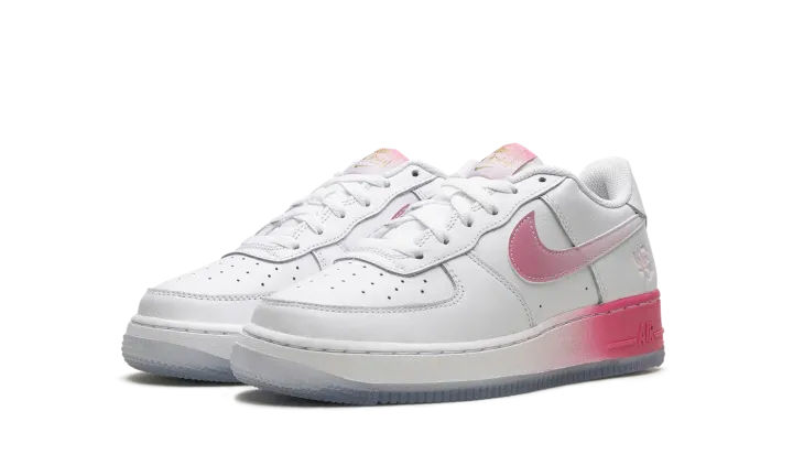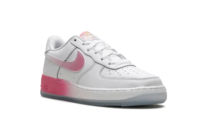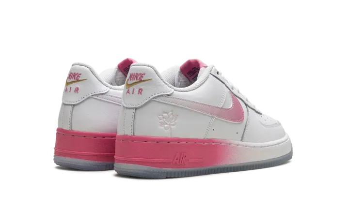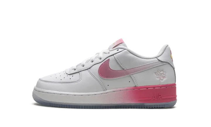 The Nike Air Force 1 Low GS "Gold Mountain" is the youth sizing of the colorway that is inspired by San Francisco's Chinatown neighborhood. The "Gold Mountain" or "San Francisco Chinatown," the colorway's other nickname, features a white leather upper with gradient pink-to-white Swooshes on each side. A lotus flower is debossed on the lateral side of the heel. Additional branding elements include gold foil detailing on the tongue tag and traditional Chinese characters on the insole. A gradient pink midsole and icy blue translucent rubber outsole put the finishing touches on the colorway inspired by the oldest Chinatown neighborhood in the US. Release date: May 9, 2023