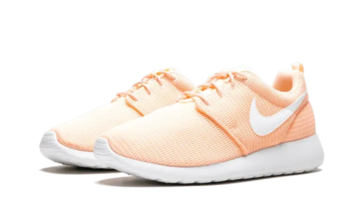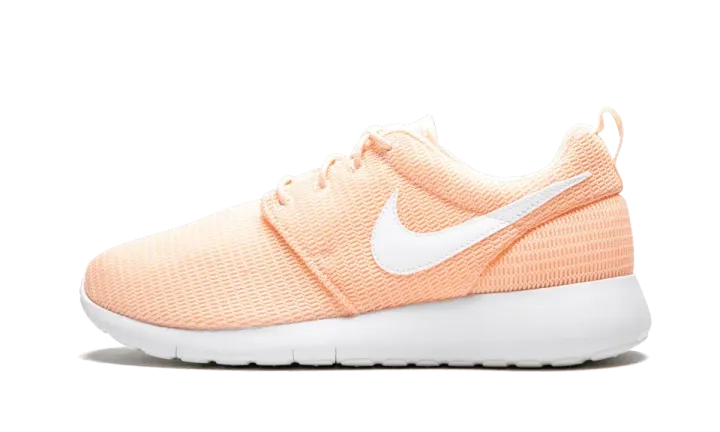 The Nike Roshe One kids' shoe is one of the most versatile sneakers your child can wear. To create an easy-to-wear sneaker, Nike designed a pair with simplistic features and zero embellishments. Superior ventilation comes from the ultra-lightweight mesh upper, and the full-length Phylon midsole offers all-day, everyday comfort. The Nike Roshe One upper, lacing system, and Swoosh are a creamsicle "Crimson Tint" orange and a white Swoosh and midsole complete the sneaker.