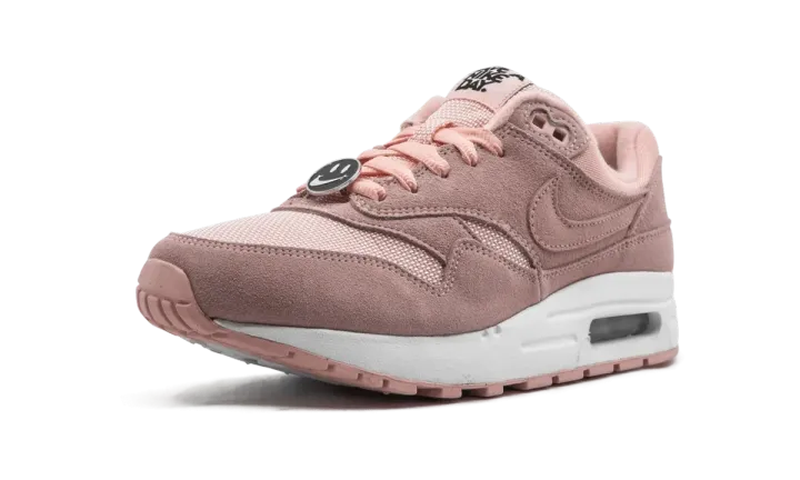 The Nike Air Max 1 GS "Have a Nike Day" is the grade school children's sizing for the "Bleached Coral" colorway from 2019's "Have a Nike Day" pack. The multi-shoe collection featured Nike's vintage slogan, which is seen on the tongue of this kids' version of the Air Max 1. The colorway features a tonal Bleached Coral shade of pink across the mesh and suede upper with a contrasting white midsole. A graphic of a smiley face with a Swoosh for its mouth is embroidered on the heel and on the metal accoutrement attached to the laces. The Nike Air Max 1 GS "Have a Nike Day" released in early 2019.