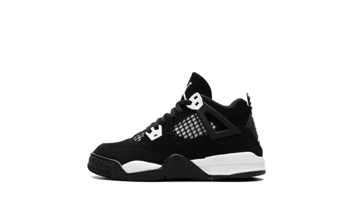 The Air Jordan 4 PS "White Thunder" is a colorway of the retro basketball shoe that draws favorably to a popular style in the Jordan 4's line. The shoe we're referring to is the Jordan 4's "Thunder" colorway from 2006's "Thunder & Lightning" pack that was released in limited quantities exclusively on Jumpman23.com, Jordan Brand's former website. On the "White Thunder," the look mimics the "Thunder" by substituting the latter's yellow accents for white, giving the shoe a two-tone, black-and-white, "Panda" inspired look. The upper features a black synthetic nubuck base with white detailing beneath the mesh on the sides and tongue. White "wings" lace holders contrast the neutral-colored upper. A white Jumpman appears on the heel. The look is brought together by the white painted midsole. A small clear Air unit in the heel puts the finishing touches on the shoe. Release date: August 2024