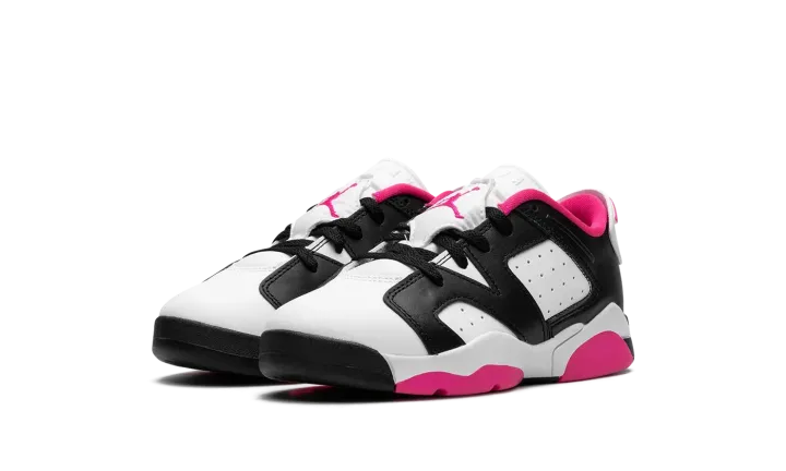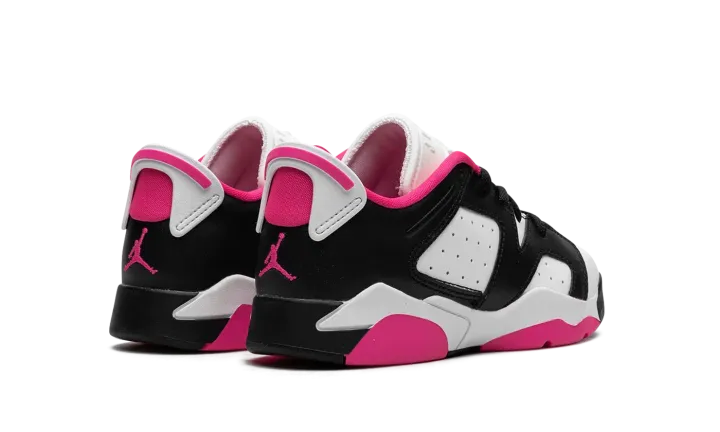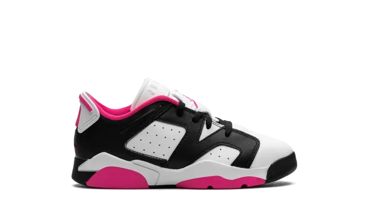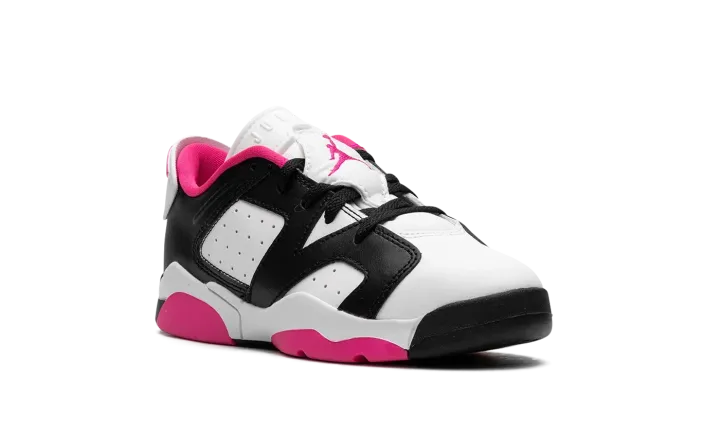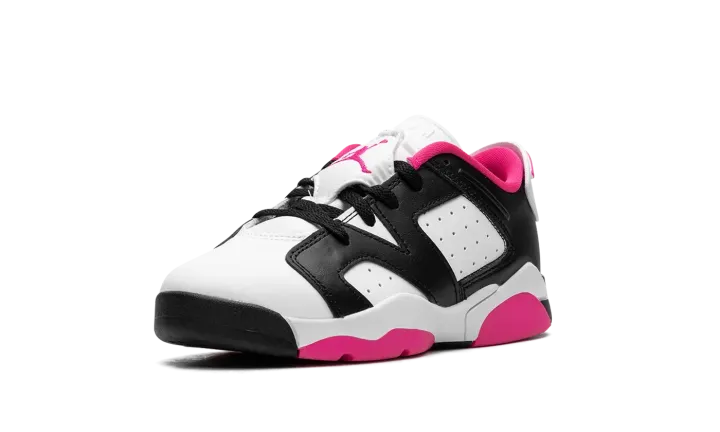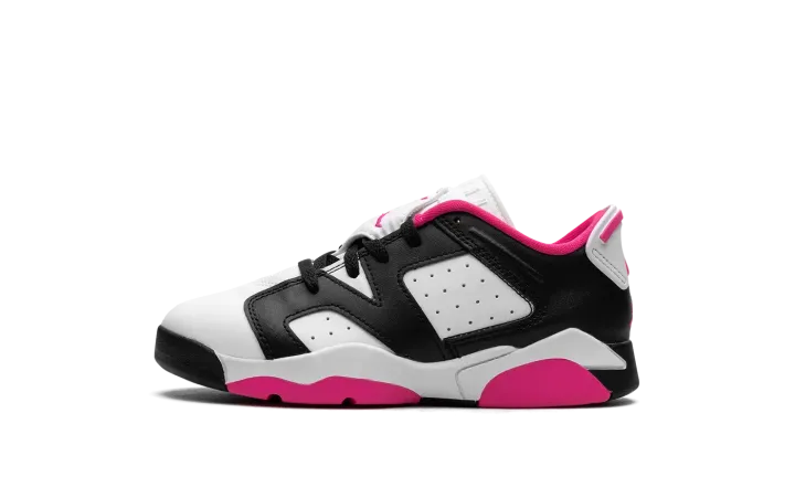 The Air Jordan 6 Low PS "Fierce Pink" is the preschool sizing for the low-top version of Michael Jordan's sixth signature shoe in a vibrant colorway. The Jordan 6 Low "Fierce Pink" was released exclusively in kid's sizes and features a white base contrasted with black leather overlays. Fierce Pink accenting lands on the Jumpman on the tongue, on the inner lining, on the pull tab on the heel, and on the outsole. Underfoot, the shoe is complete with a white rubber midsole that's placed on a black and pink rubber outsole. Release date: July 24, 2023
