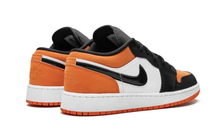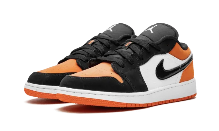 The Air Jordan 1 Low GS "Shattered Backboard" is the youth sizing of the popular colorway of the timeless Air Jordan 1 silhouette in low-top form. Released in 2015, the "Shattered Backboard" colorway of the Air Jordan 1 features an impressive backstory; in 1985, Michael Jordan, then a rookie with the Chicago Bulls, broke the backboard following a powerful dunk in an overseas exhibition game. The clean orange and black makeup proved to be a winning combination on the silhouette and Jordan Brand continued to play on the theme for this low-top iteration in 2019. The upper consists of a Starfish leather toe with black nubuck overlays. A white tumbled leather mid-panel features a black leather Swoosh while an orange heel completes the look of the upper. Below, a white rubber base and orange outsole put the finishing touches on the design. The grade school sizing of the Air Jordan 1 Low "Shattered Backboard" was released Summer 2019.