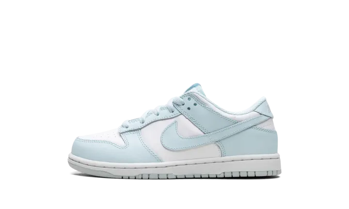 Built for little kids, the Nike Dunk Low PS 'Glacier Blue' brings a leather upper featuring a white base with icy blue overlays and a color-matched Swoosh.