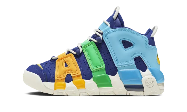 Go big or go home! The Nike Air More Uptempo brings the legendary, larger-than-life style of the '90s hardwood back to the streets. Known for its exaggerated, graffiti-style branding, this "Kaleidoscope" edition offers a vibrant, multi-blue look for the next generation.