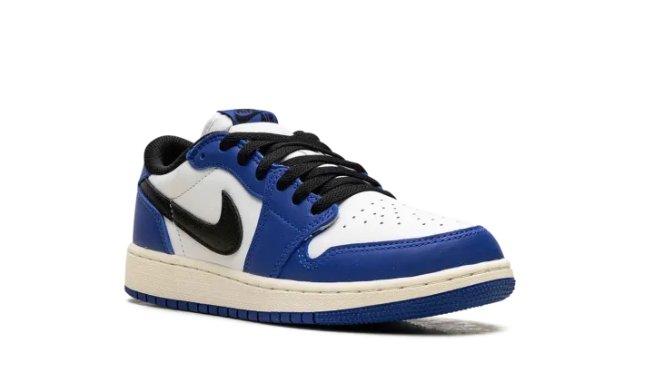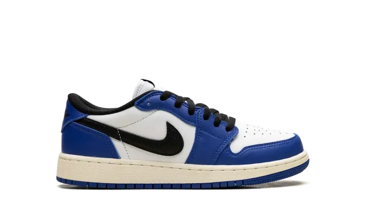 Bring that iconic 1985 energy to a younger generation with the Air Jordan 1 Retro Low OG GS 'Game Royal,' the "Court King Jr." This Grade School sneaker features the coveted OG low-top profile and premium all-leather construction. The White and Game Royal color-blocking is complemented by a bold Black Swoosh, giving a fresh expression to an all-time favorite color combination. With the classic Nike Air tongue tag and embossed Wings logo, this shoe delivers legendary style and a comfortable, cushioned fit for all-day play.