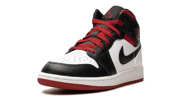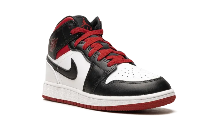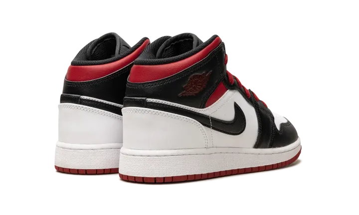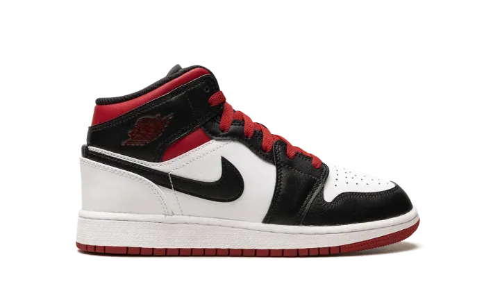 The Air Jordan 1 Mid GS "Gym Red Black Toe" is the youth sizing of the casual shoe in a decidedly Chicago Bulls-inspired colorway. Paying homage to Michael Jordan's run with the Bulls in the 1980s and 1990s, the "Gym Red Black Toe" features the team's uniform colors on its design. The upper features a white leather base with contrasting black leather on the toe cap, forefoot, eyelets, and collar. Gym Red accenting appears on the collar and laces, and on the "Wings" logo and Jumpman on the collar and tongue, respectively. A white midsole and red outsole complete the look. Release date: June 20, 2023