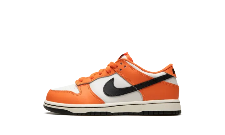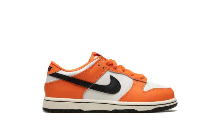 The Nike Dunk Low PS "Halloween 2022" is the preschool sizing of the colorway inspired by the spooky holiday. Halloween has proven to be a popular source of inspiration for sneaker colorways over the years, and that is very much evident on this Dunk Low. The shoe features an Iron Grey leather base with tonal cracked leather overlays and Swoosh branding. An oversized tonal Swoosh is layered over the grey suede logo giving the branding a shadow-like effect. Grey "Nike" detailing appears on the back of the shoe and on the tongue tag. The green Nike Grind outsole is made from recycled materials. Release date: October 27, 2022