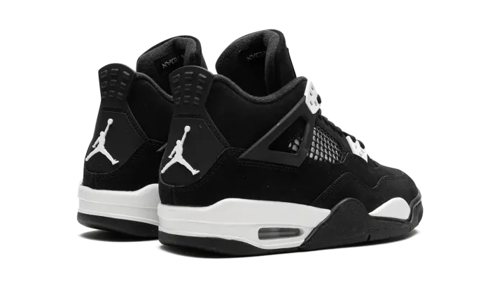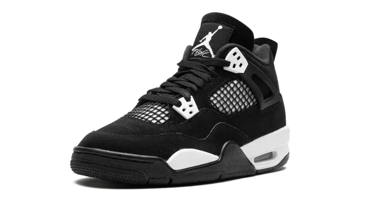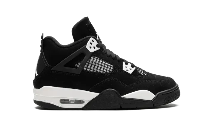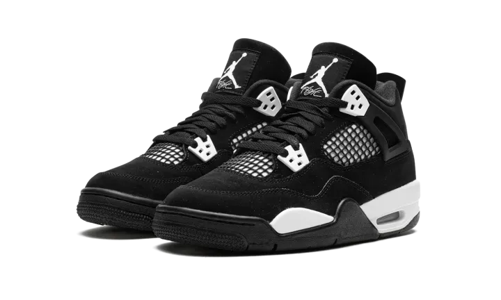 The Air Jordan 4 GS "White Thunder" is a colorway of the retro basketball shoe that draws favorably to a popular style in the Jordan 4's line. The shoe we're referring to is the Jordan 4's "Thunder" colorway from 2006's "Thunder & Lightning" pack that was released in limited quantities exclusively on Jumpman23.com, Jordan Brand's former website. On the "White Thunder," the look mimics the "Thunder" by substituting the latter's yellow accents for white, giving the shoe a two-tone, black-and-white, "Panda" inspired look. The upper features a black synthetic nubuck base with white detailing beneath the mesh on the sides and tongue. White "wings" lace holders contrast the neutral-colored upper. A white Jumpman appears on the heel. The look is brought together by the white painted midsole. A small clear Air unit in the heel puts the finishing touches on the shoe. Release date: August 2024