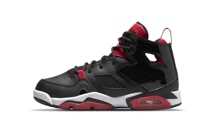 Capture the golden age of basketball with the Jordan Flight Club '91 GS, a grade school shoe sporting the classic "Black University Red White" colorway. This design draws inspiration from the legendary Air Jordan 6, featuring a structured frame of genuine and synthetic leather with breathable mesh inlays. It includes a soft inner bootie for a snug fit, and a visible Air-Sole unit in the PU midsole for supportive cushioning. This high-top perfectly blends premium materials with iconic Chicago Bulls colors.