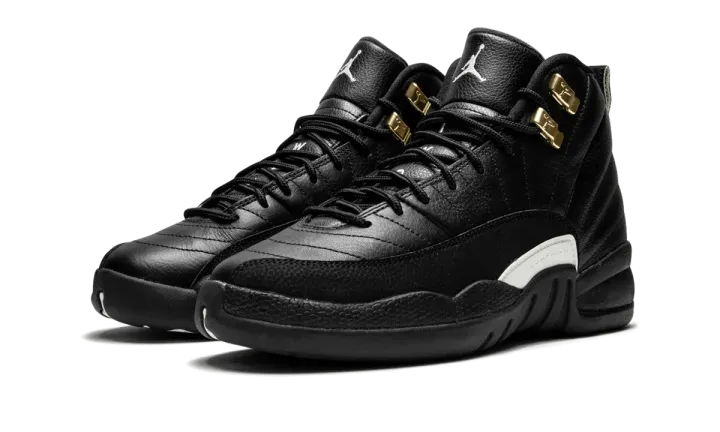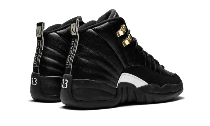 Inspired by a classic poster graphic from the ad campaign of the original Air Jordan 12, this all-new look released in 2016 features a luxe black leather upper with accents in grey and metallic gold. The clean version will go down as one of the best colorways for the twelfth Air Jordan ever. This listing is for Grade School sizing.