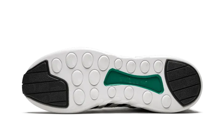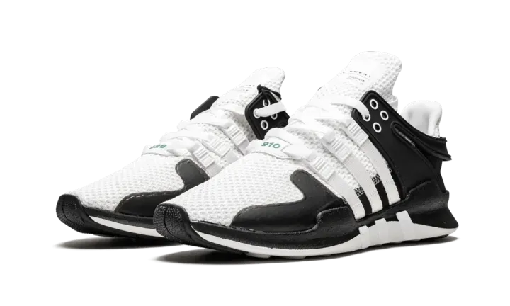 A special limited release of the past-meets-present EQT ADV by adidas Consortium, this colorway features a high-contrast white and black upper with green accents.