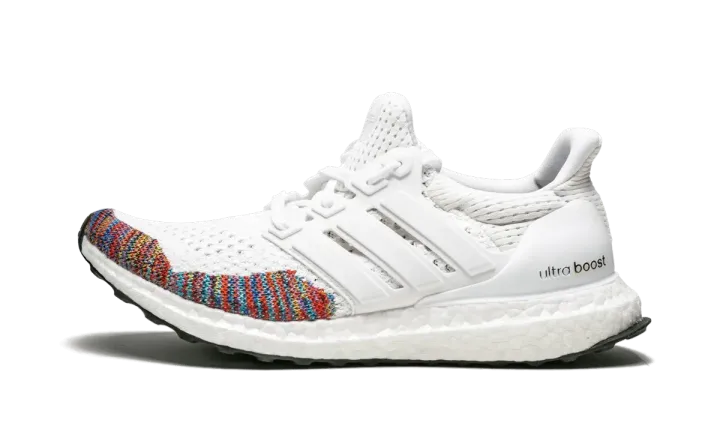 In 2018, the Adidas UltraBoost LTD "White Multicolor" was brought back from its original launch three years prior, a time when the model saw extreme popularity among sneaker fans. As one of the original UltraBoost colorways, the sneaker features a white Primeknit upper with matching Three Stripes. What makes the Adidas sneaker's presence known is the multi-colored hit that wraps around the toe. Finishing off the Adidas UltraBoost LTD is the brand's signature stark-white Boost midsole and black outsole.